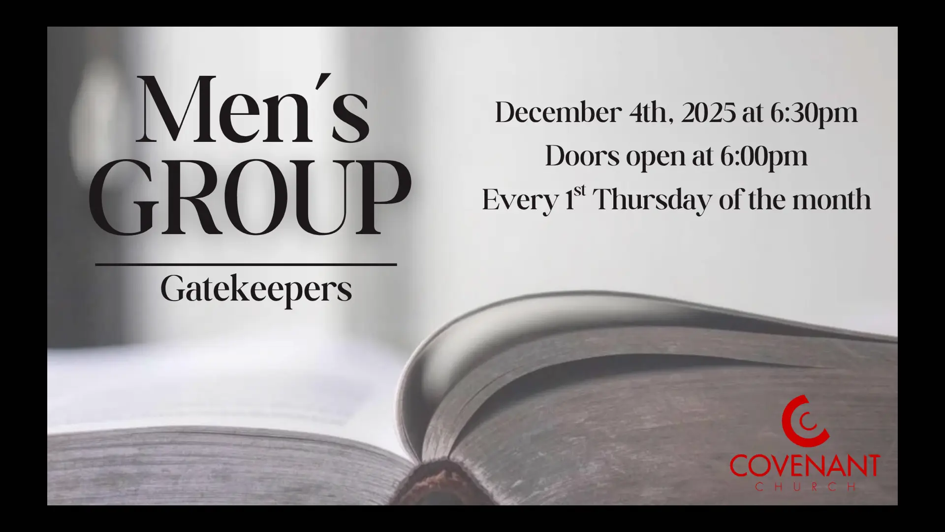 Join other men for fellowship, encouragement, and growth in faith as we strengthen one another to stand as spiritual gatekeepers in our homes and community.